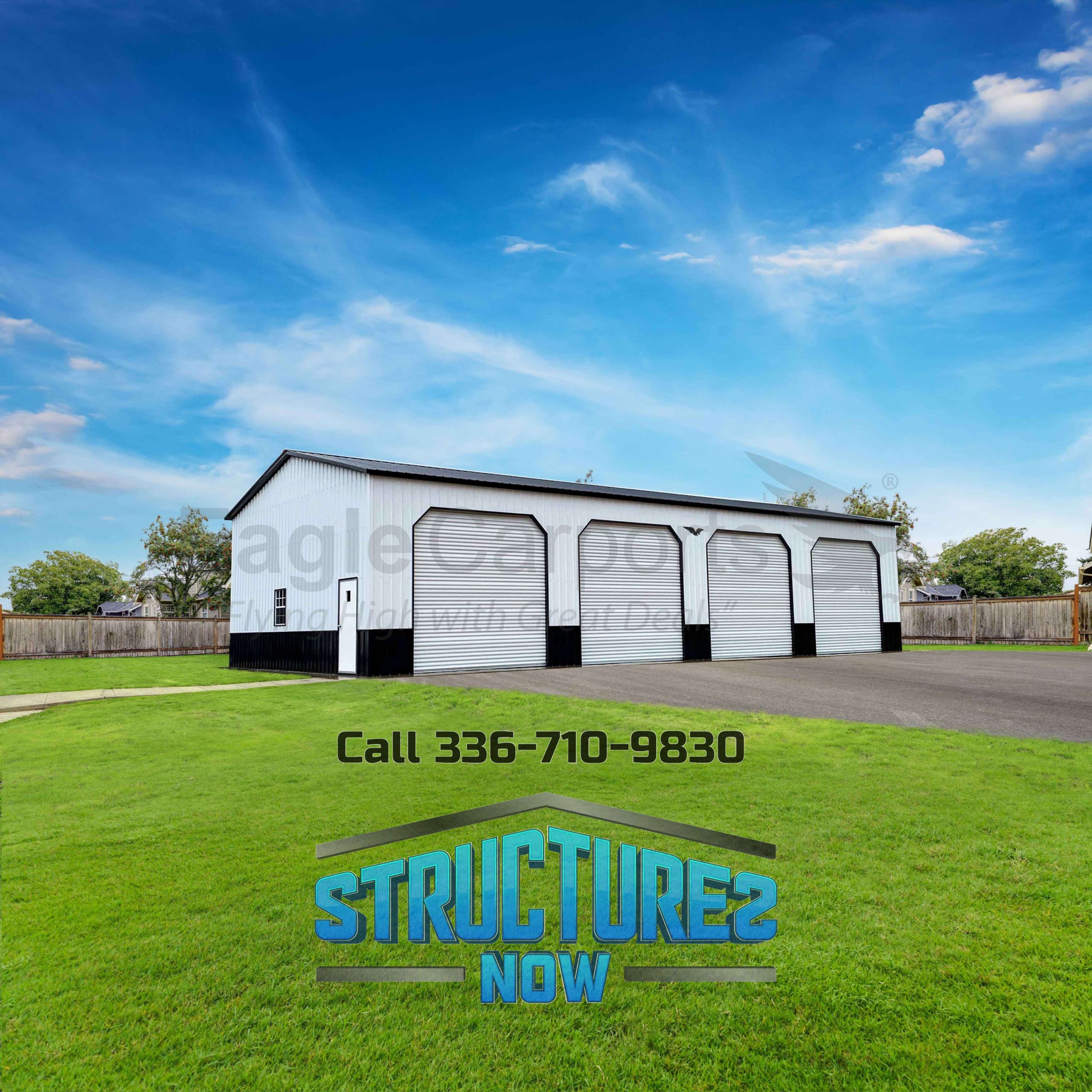 Long trailers, boats, or multiple vehicles line up easily in this 32 ft wide by 65 ft long by 14 ft high garage – extended length and tall clearance make loading and organization straightforward. Rugged frame stands firm through seasons. Perfect for narrow lots with plenty of depth to use.