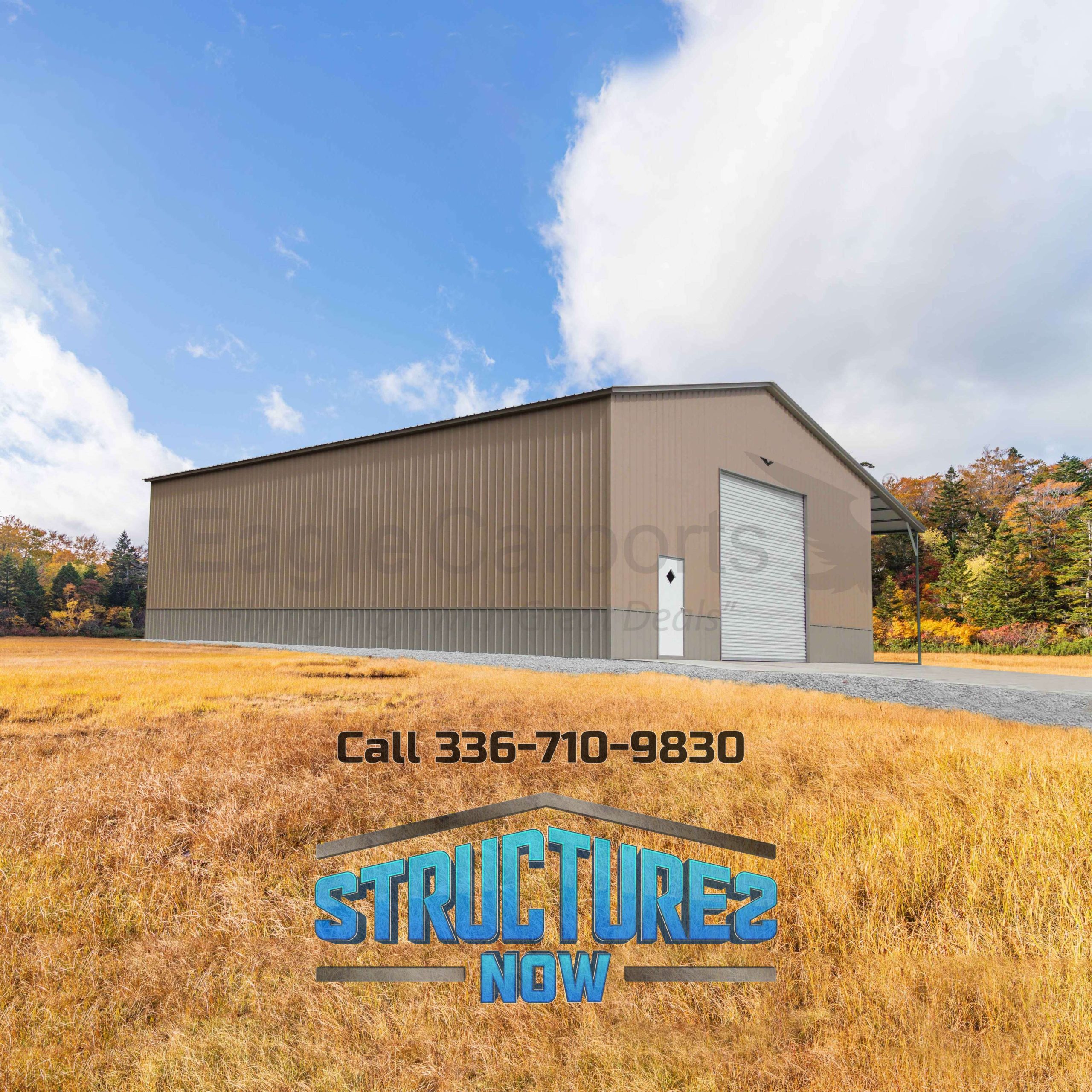 Huge volume inside this 52 ft wide by 60 ft long by 16 ft high garage with 13 ft sidewalls pairs with the attached 12 ft lean-to – room for tractors, boats, ATVs, or entire workshop layout. Wide span and tall walls simplify moving big items, rugged frame stands strong against heavy snow and wind. Serious working space for anyone outgrowing ordinary sheds.